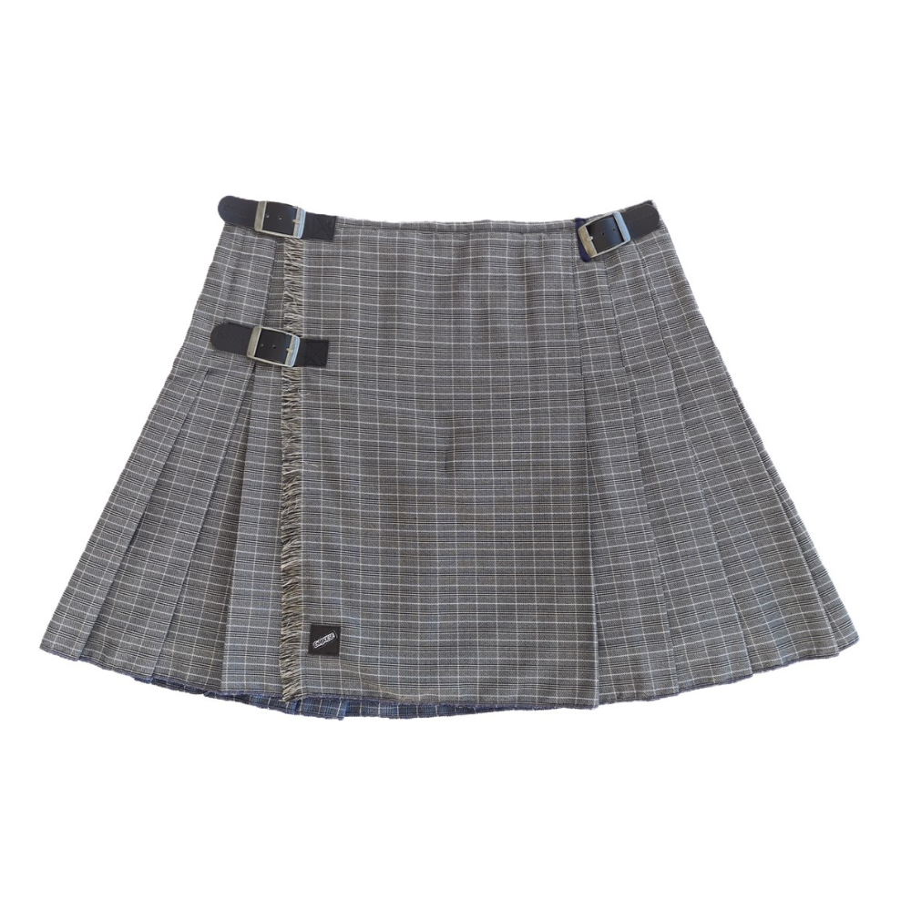 Kilt em tecido dupla estampa de alfaiataria, furta-cor, forrada em cetim com elastano, proporcionando conforto aos movimentos. Detalhes e acabamento Premium, com costura dupla, fivelas em couro e metais em estanho e níquel.